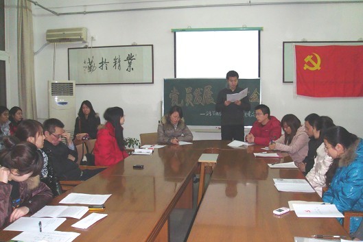 2010年12月27日晚上6:00,卫生管理与教育澳门威尼斯人官网 研究生党支部在澳门威尼斯人娱乐城 第一教学楼490室召开党员发展、转正大会,接收4名同志为预备党员,另外4名同学如期转正。澳门威尼斯人官网 书记王泽生,研究生党支部委员会以及党员、预备党员、入党积极分子和部分群众共计33人参加了此次会议,会议由支部书记李香蕊主持。 会议程序严格按照发展党员的程序进行。首先,由发展对象宣读入党志愿书,再由入党介绍人介绍情况并表明是否同意其发展其入党的意见,然后由党支部宣传委员宣读该同志的群众意见征集结果,大家进行民主评议并讨论。到会的正式党员对每位发展对象进行投票表决,经参会的18名中共正式党员表决,刘琦、王宇、任飞斐、丁璐4名同志成为中共预备党员。新发展的党员一一表态,他们首先表达了自己的激动心情,对党组织对自己的培养和关怀甚为感激。尤其对到会党员所提出的意见也虚心接受并愿意积极改正。接着,他们表示会更加坚定共产主义信念,更加努力和积极地学习党的知识,加强自己的党性修养,改正自己的缺点和不足,成为一名名副其实的共产党员。 图为发展对象宣读入党志愿书 随后,大会按照党员转正程序对提出转正申请的同志一一进行讨论,并通过投票表决,一致同意胡广宇、向珍君、赵同香和石扩4明预备党员按期转正。各位转正党员也纷纷向党组织表示今后一定会在学习、生活、工作中不断地完善自己,克服缺点和不足,做一名优秀的共产党员。 会上,张瀚宇、李珑、崔娜等积极分子也向大家介绍了自己的情况,并表明了积极加入党组织的愿望和决心。 图为积极分子谈论自己的感受 最后澳门威尼斯人官网 王泽生书记讲话,他对转正的党员和新发展的党员表示祝贺,同时强调,批评与自我批评是我们党的优良作风,这种作风应继续保持和发扬,党员的先别性才能更好的体现,我们的党才更富青春活力。